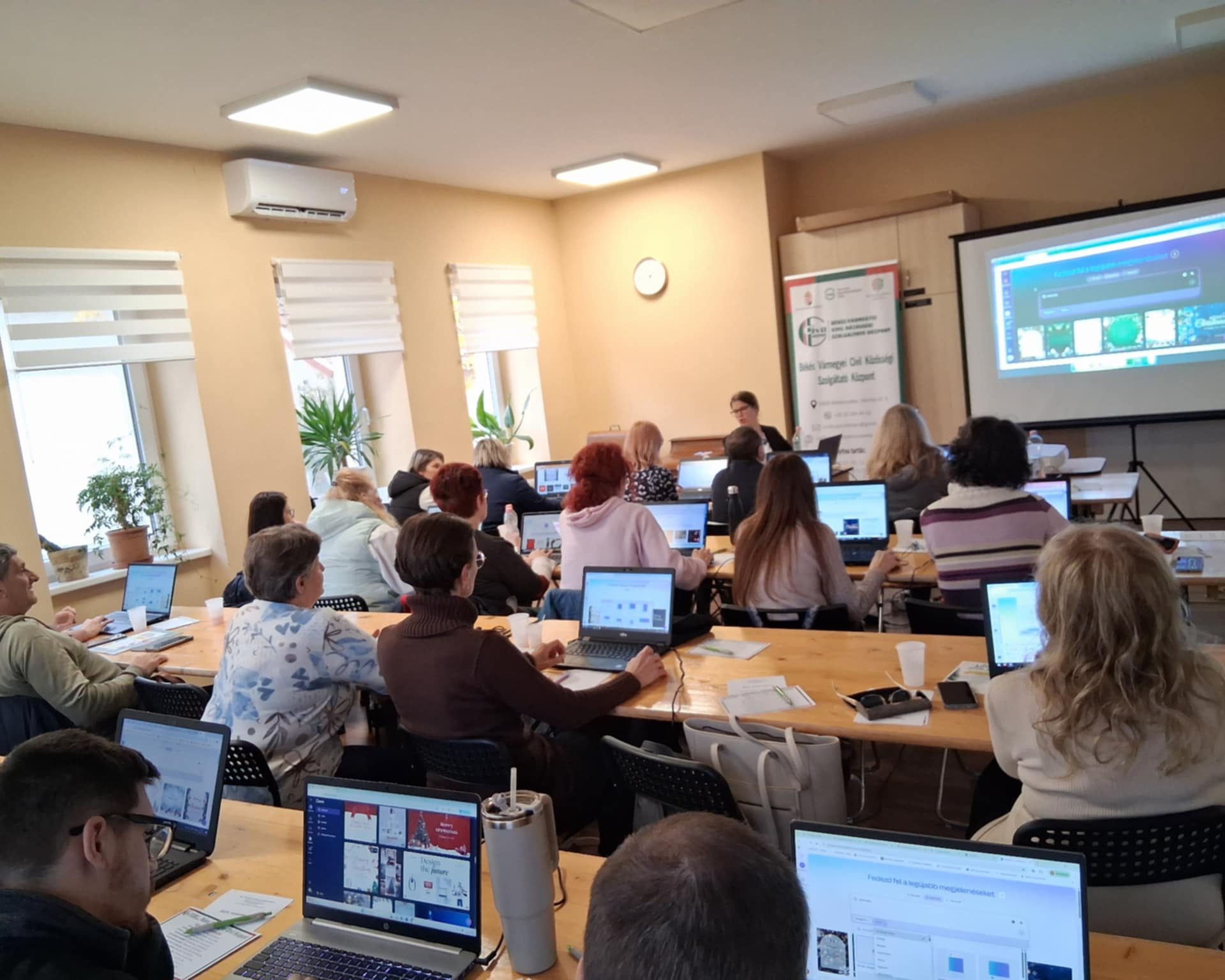 A civil szervezetek mindennapjaiban egyre fontosabb a gyors, igényes és következetes kommunikáció – legyen szó eseménymeghívókról, közösségi média posztokról, plakátokról vagy prezentációkról. Ezt támogatva november 27-én informatika képzést szerveztünk Canva-fókusszal, kifejezetten gyakorlati szemlélettel. A képzés során szó esett a Canva felület alapfunkcióiról, a tervezés lépéseiről (sablonok, képek, elrendezések), valamint a leggyakoribb felhasználási módokról: posztok, plakátok és prezentációk készítéséről. Külön figyelmet kapott a Canva Prémium (Pro) lehetőségeinek bemutatása is – extra tartalmak, márkaeszköztár, csapatmunka –, valamint az a fontos információ, hogy civil szervezetek számára díjmentes Pro igénylésre is van mód. A programot közös gyakorlati anyagkészítés zárta: látványos, mégis könnyen szerkeszthető példákon keresztül.