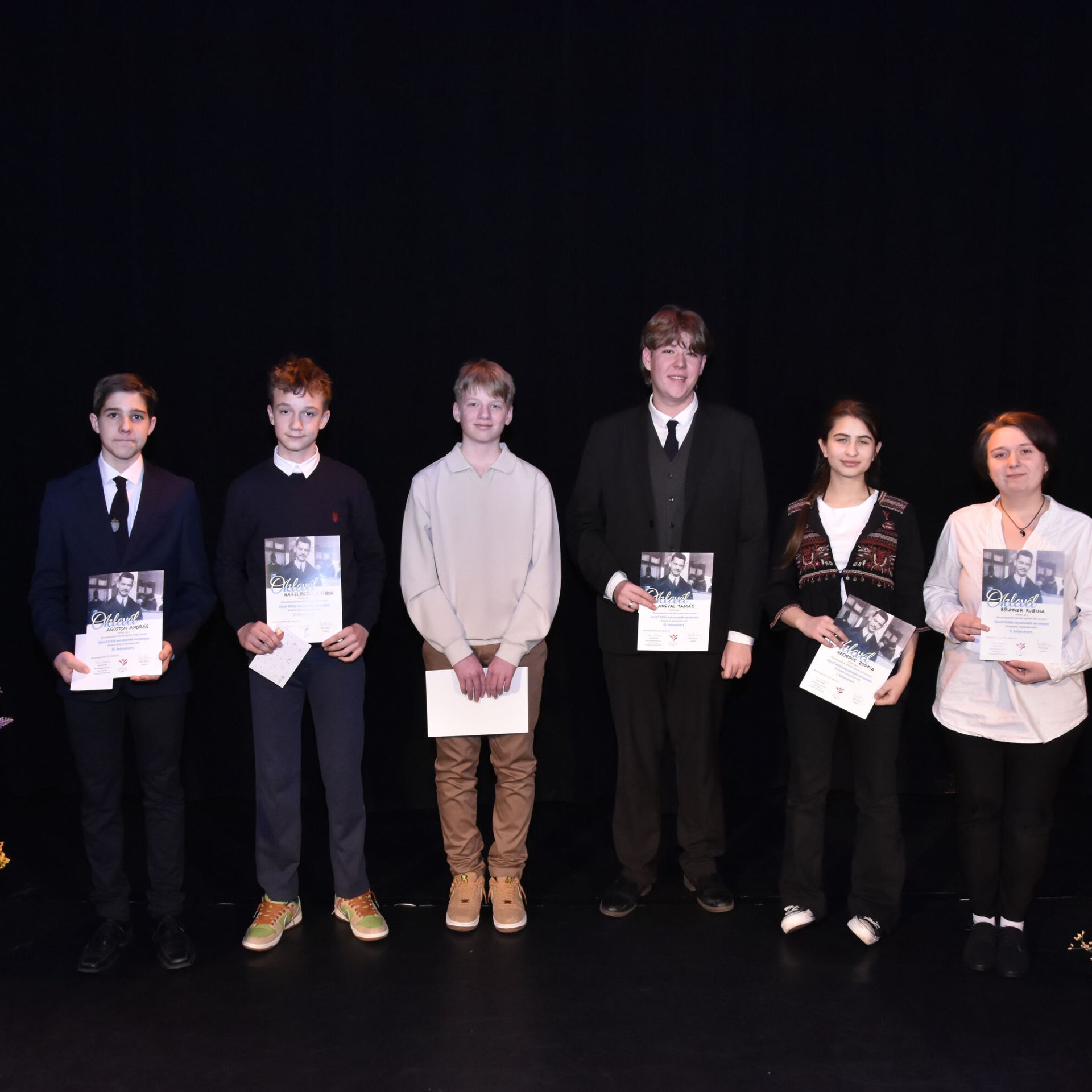 felkészítő tanár: dr. Váradi ViolaA helyezettek oklevél és könyvvásárlási utalvány jutalomban részesültek. Továbbá felkérést kaptak a Mosonmagyaróvári Kulturális Egyesület által szervezett április 11-i Költészet napi koszorúzási rendezvényen versük elmondására.